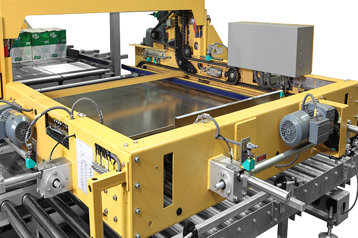 新式的編組站推箱傳動采用直線導軌配滑塊,運行平穩(wěn),結(jié)構(gòu)簡潔。進箱采用通過伺服電機精準定位,不需要再加截箱裝置,對于不同的碼垛的排列方式,可以進行任意的排列。在啤酒產(chǎn)品的碼垛中,輸送帶運行平穩(wěn),控制精確度高,不會產(chǎn)生爆瓶的問題。