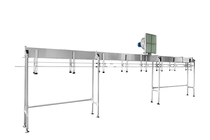 送瓶風(fēng)道主要分為普通風(fēng)道和無菌風(fēng)道,模塊化設(shè)計,讓風(fēng)道安裝和適應(yīng)不同的車間生產(chǎn)線布局變得簡單快速,速度的調(diào)節(jié)通過變頻控制實現(xiàn)。