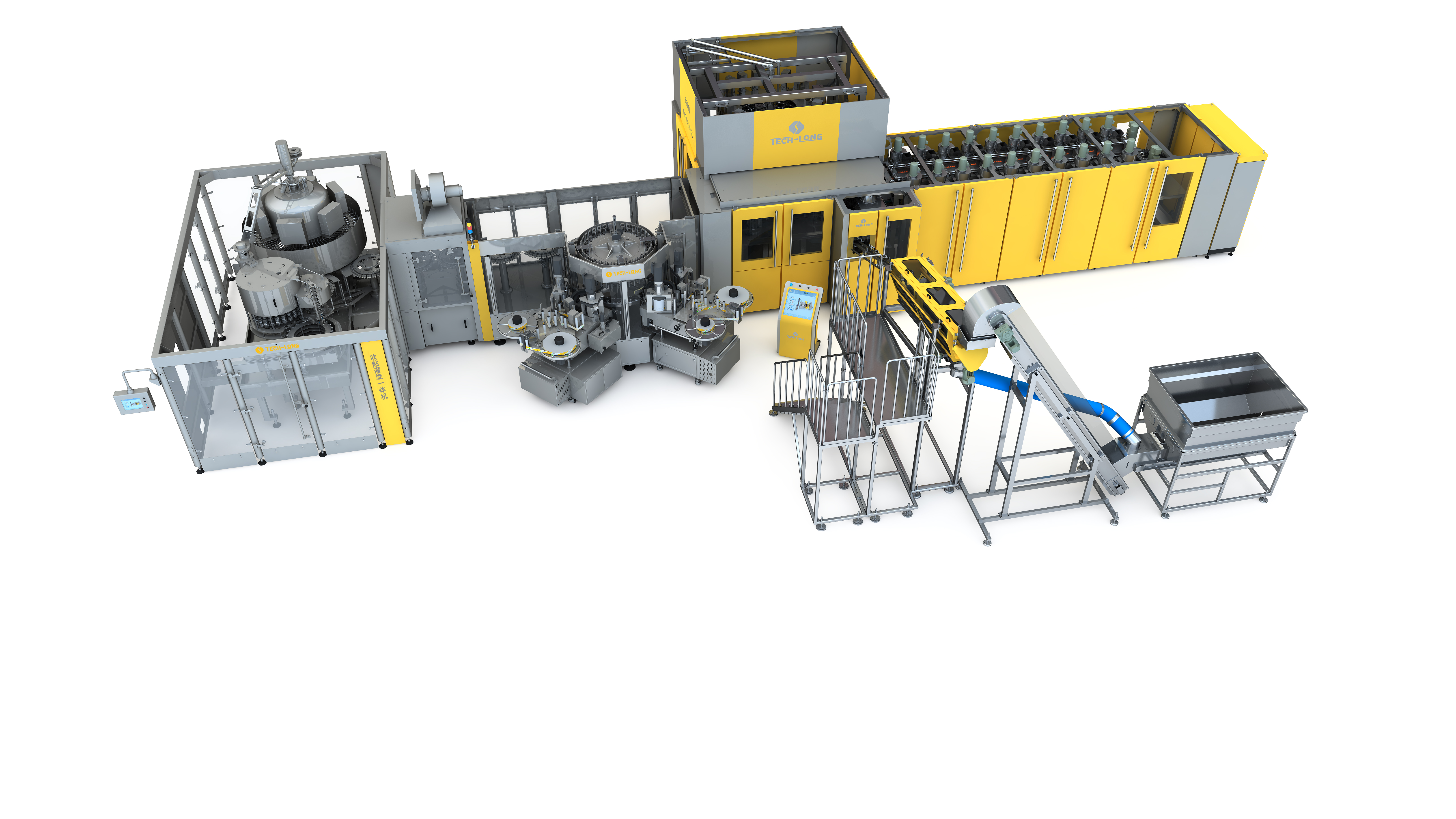 吹貼灌旋一體化布局,與傳統(tǒng)生產(chǎn)線相比節(jié)約空間20%~30%,省去貼標(biāo)機前端無壓力輸送、瓶身風(fēng)干系統(tǒng)等設(shè)備。